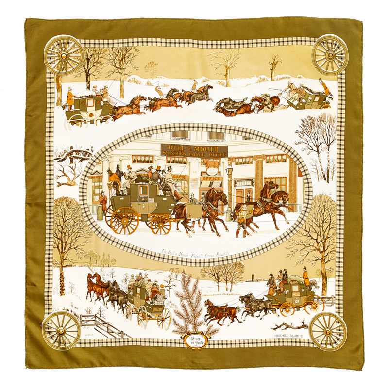 "L'Hiver en Poste" pattern, designed by Philippe Ledoux. Together with an envelope.Labeled within the print: Herms.