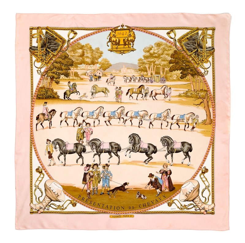 "Presentation de Chevaux" pattern, designed by Philippe Ledoux. Together with a box. Labeled within the print: Herms.