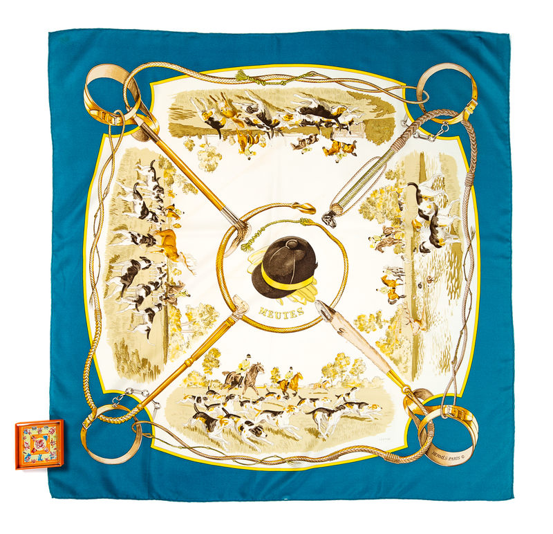 "Les Meutes" pattern, designed by Philippe Ledoux. Together with a game box. Labeled within the print: Herms.