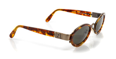 with brushed goldtone hardware and logo motif hinges at the arms.Together with a case.Stamped: Fendi.