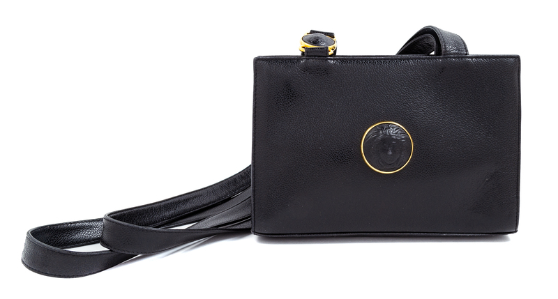 A Gianni Versace Black Leather Medusa Medallion Shoulder Bag,
