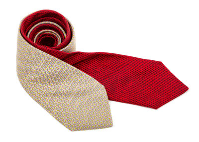 the first grey with a yellow clover motif; the second red with a black rope diagonal motif. Labeled: Herms.
