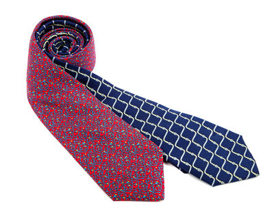 the first red with a scroll motif; the second navy with a belt motif.Labeled: Herms.