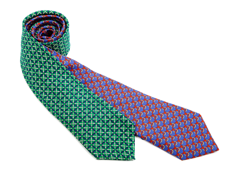 the first green with a lattice motif; the second blue with a rope and ring motif.Labeled: Herms.