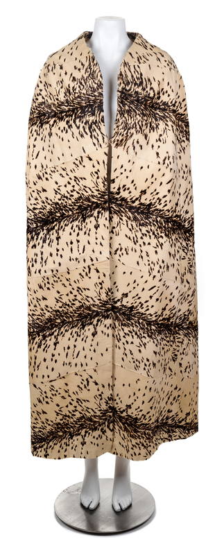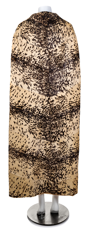 A Maximilian Cream and Brown Stenciled Goatskin Floor Length Cape,