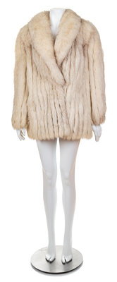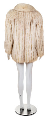 with a shawl collar, vertical panels, front slip pockets, hook and eye front closure, elastic cuffs and fully lined in silk.Labeled: Evans.