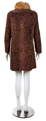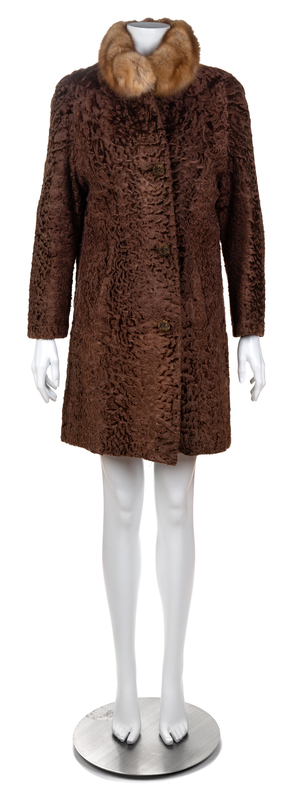 with a mink trimmed collar, decorative front button closure, front slip pockets and fully lined.Unlabeled.