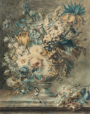 Still Life: Bouquet of Flowers in a Vase on a Ledge