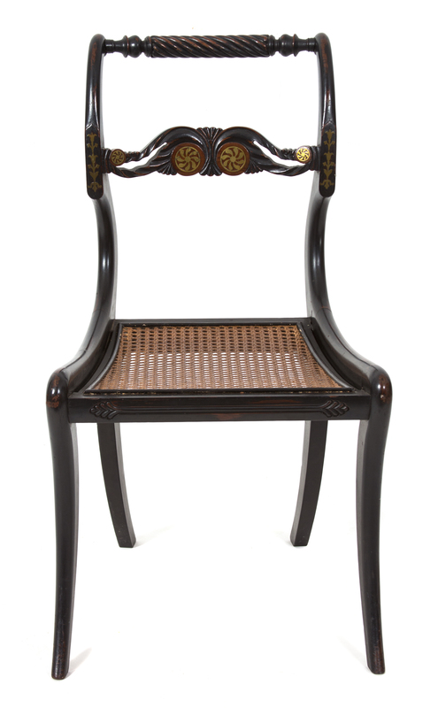 A Regency Ebonized and Brass Inlaid Cane Seat Side Chair