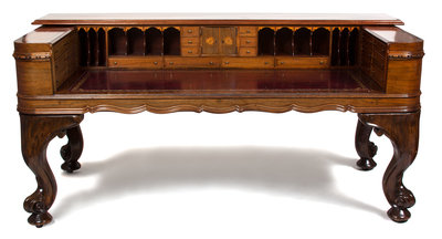 A Victorian Rosewood and Mahogany Spinet Piano-Form Desk