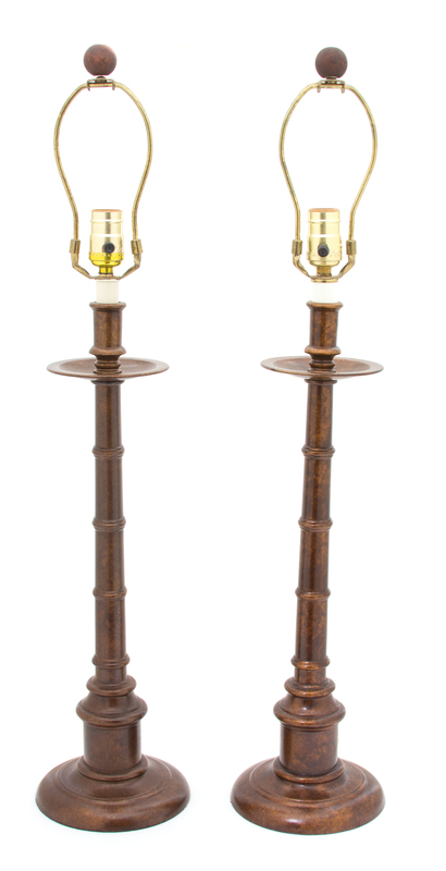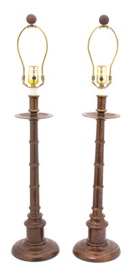 A Pair of Patinated Metal Table Lamps