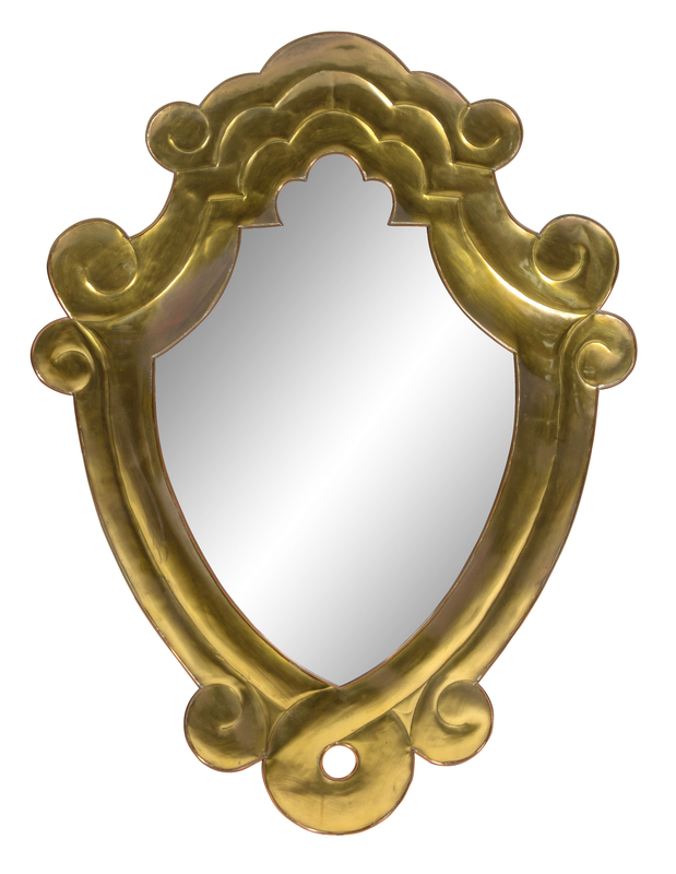 A Cartouche-Form Brass Mirror