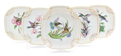 each depicting hummingbirds in flight with flowers.