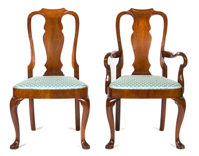 A Set of Seven Queen Anne Style Mahogany Dining Chairs
