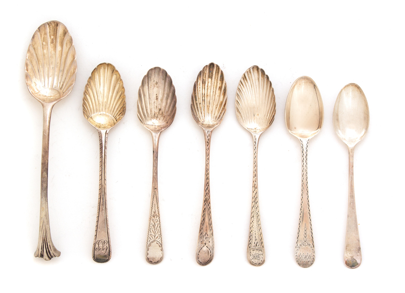 A Collection of Fifty English Silver Shell Spoons