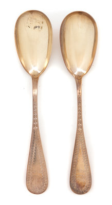 A Pair of American Silver Brite-Cut Serving Spoons