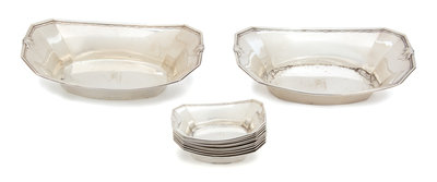 comprising two candy dishes and eleven matching nut dishes, monogrammed D