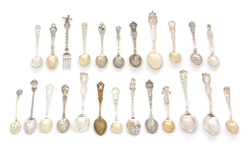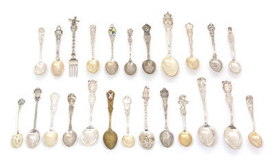 A Collection of American and Continental Silver Souvenir Spoons and One Fork