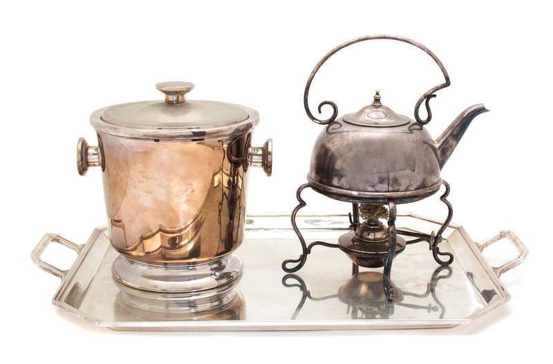 comprising a kettle on burner stand, an ice bucket and a two-handletray.