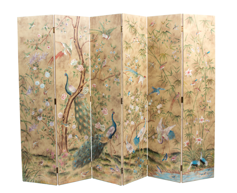 A Chinese Six-Panel Polychromed Floor Screen