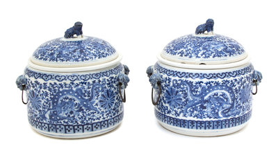 A Pair of Chinese Export Blue and White Porcelain Covered Bowls