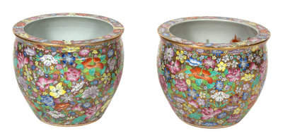 A Pair of Chinese Export Gold Medallion Style Fish Bowls