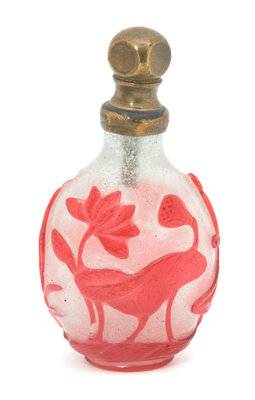 A Red Overlay Snowflake Glass Kuilong Snuff Bottle