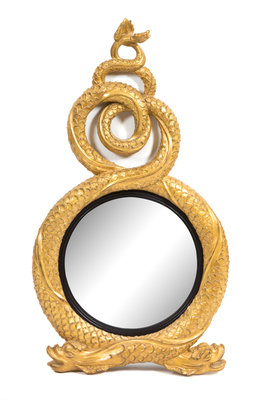 A Carved Gilt Cast Resin Double Dolphin-Form Convex Mirror