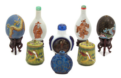 A Group of Chinese Enameled Eggs and Snuff Bottles