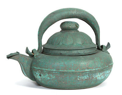 A Monumental Patinated Metal Chinese Style Teapot