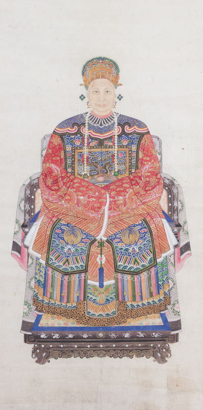 A Chinese Ink and Color on Paper Ancestor Portrait of a Lady
