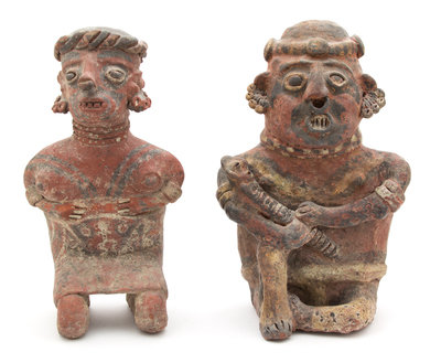 Two Nayarit Style Slip Painted Ceramic Figures