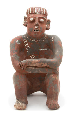 A Nayarit Style Slip Painted Ceramic Figure of Seated Woman