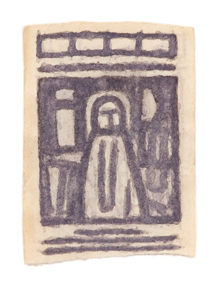 soot on colored pulp/found paper