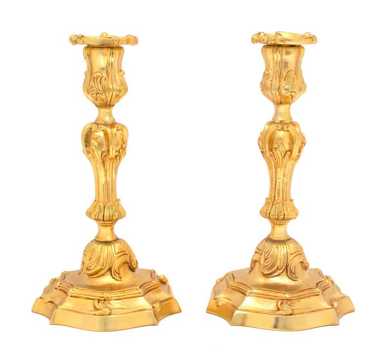A Pair of Louis XV Style Gilt Bronze Candlesticks