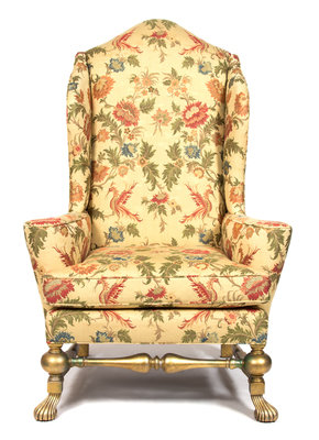A Spanish Baroque Style Giltwood Wing Chair