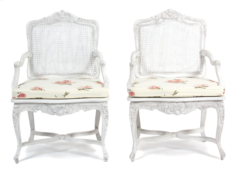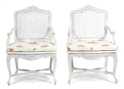 A Pair of Louis XV Style Cane Back and Seat Fauteuils