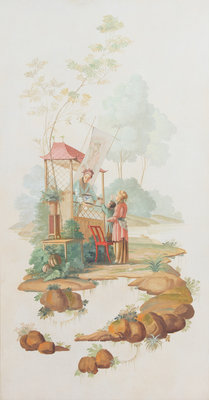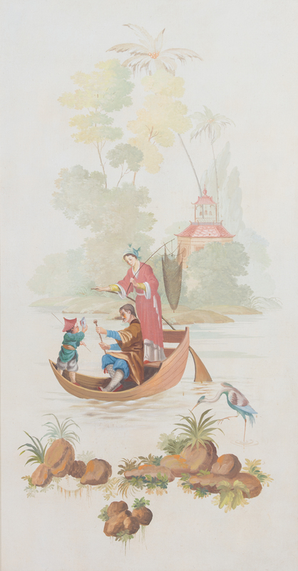 A Pair of Chinoiserie Decorative Oil on Canvas Panels