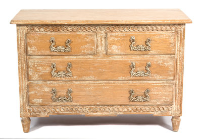 A Provincial Style Carved and Distressed Finish Chest of Drawers