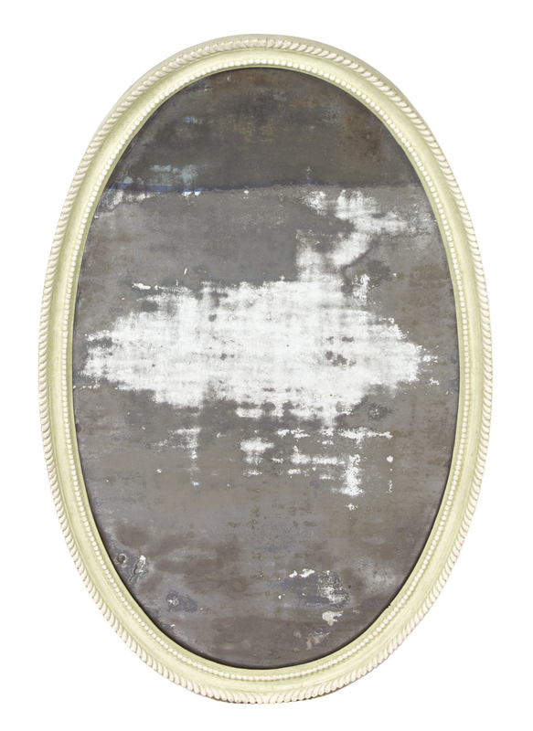A Carved and Green Painted Oval Mirror