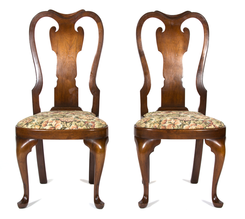 Two Queen Anne Style Mahogany Side Chairs and a Chippendale Style Footstool