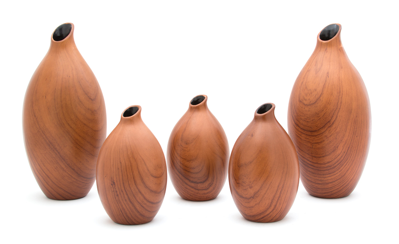 A Set of Five Contemporary Chinese Woodgrain Glazed Porcelain Vases