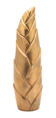 A Robert Kuo Gold Metal Weave Fluted Covered Jar