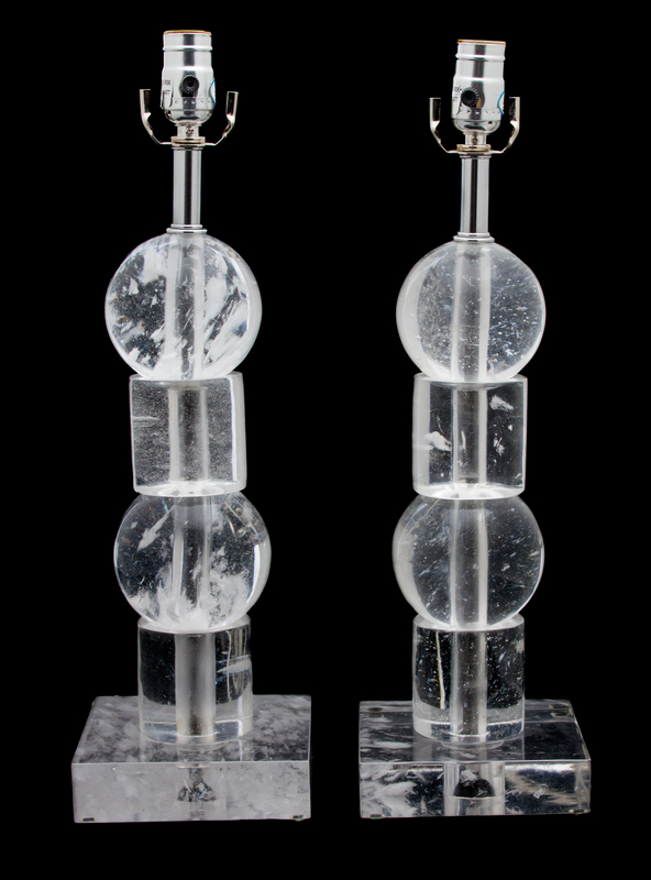 A Pair of Robert Kuo Ice Cube Rock Crystal Table Lamps