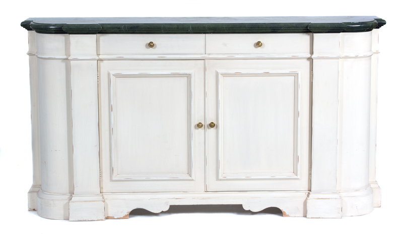 A Custom-made White Painted Console Cabinet with a Faux Green Marble Top