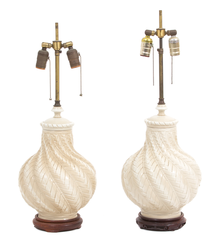 A Pair of Porcelain Lamps with Braided Pattern