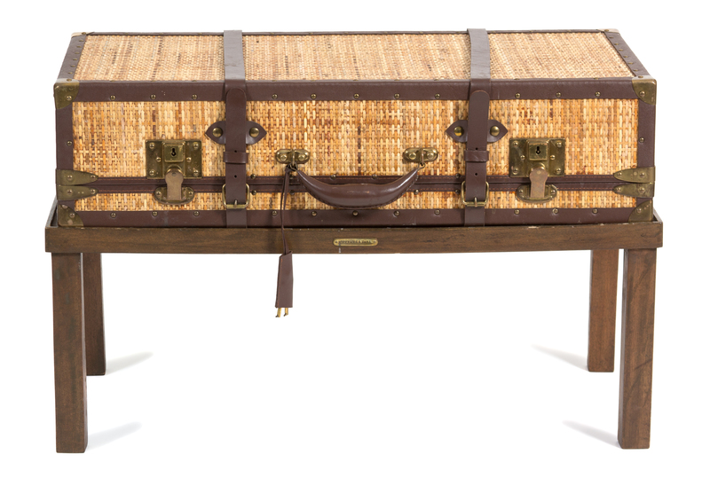 A Contemporary Leather and Brass Mounted Sisal Suitcase on Stand