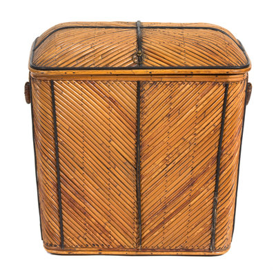 A Bamboo Faced Wood Hinged Top Hamper