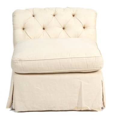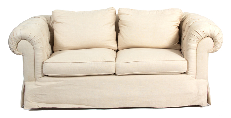 the sofa having button tufted back and arms.