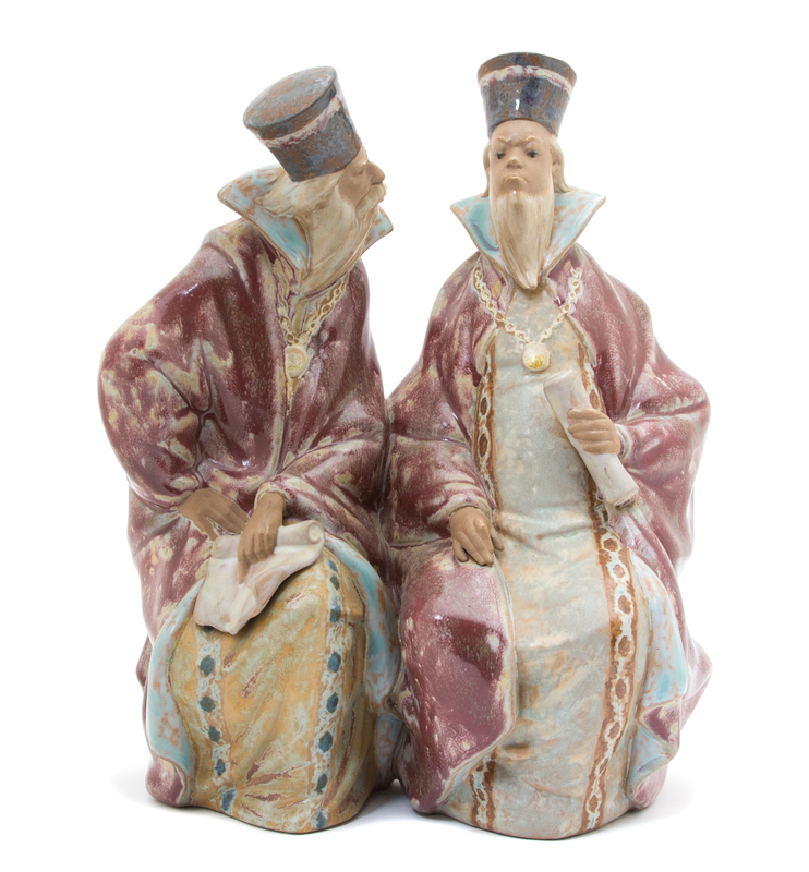 A Lladro Glazed Terracotta Figural Group of Two Scholars
